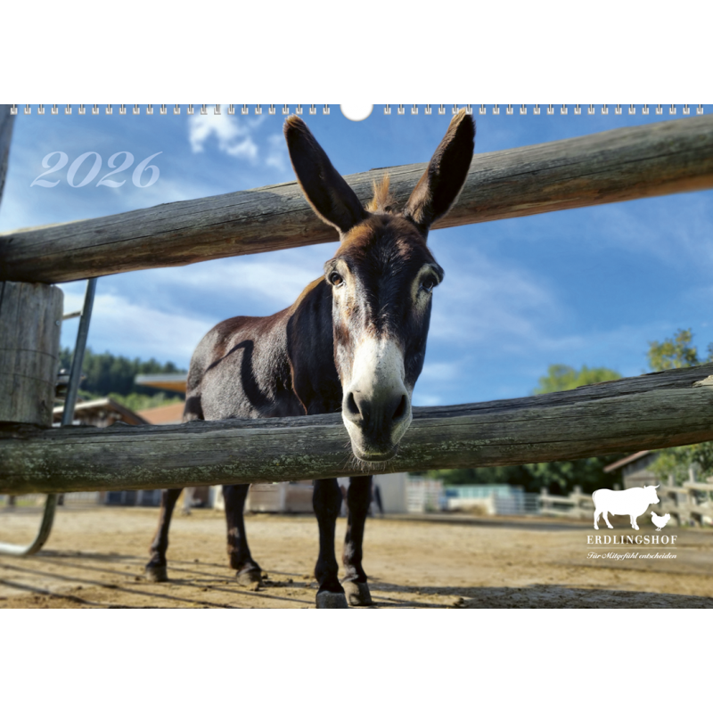 Erdlingshof-Wandkalender im A3-Format mit wunderschönen Tierbildern. Dieses Mal hat es der zauberhafte Esel Ole auf das Titelbild geschafft.